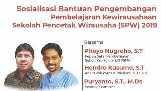 - Sosialisasi Bantuan Pengembangan Pembelajaran Kewirausahaan Sekolah Pencetak Wirausaha (SPW) 2019